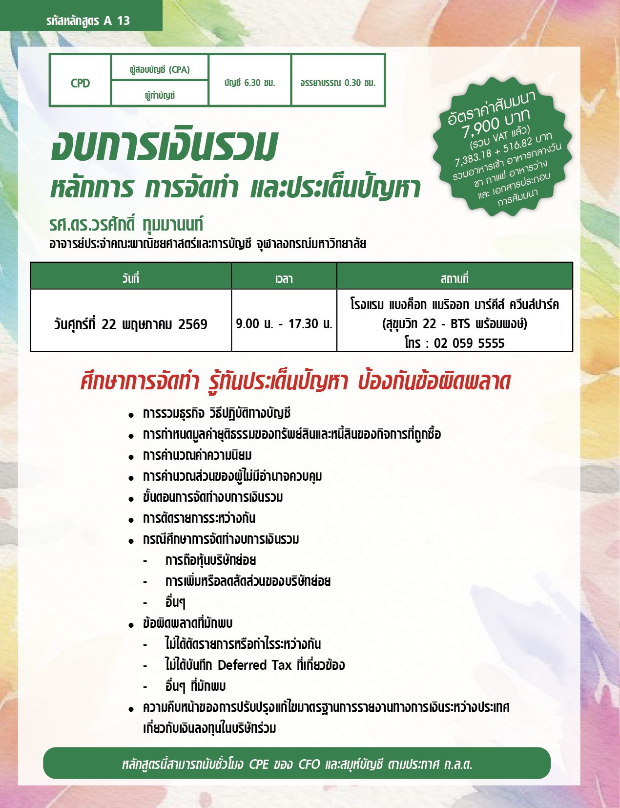 CPA: บัญชี 6.30 ชม. จรรยาบรรณ 0.30 ชม.