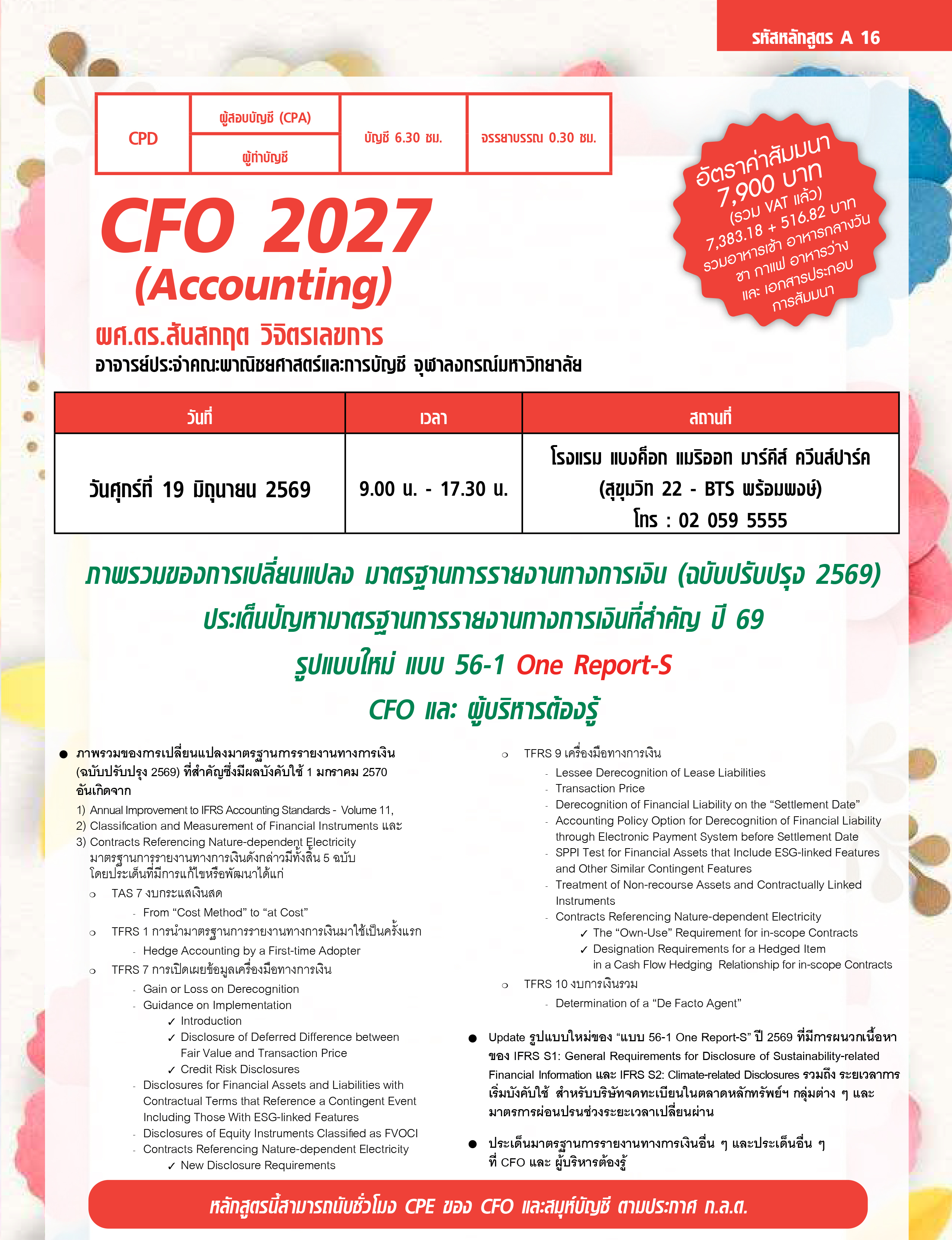 CPA: บัญชี 6.30 ชม. จรรยาบรรณ 0.30 ชม.