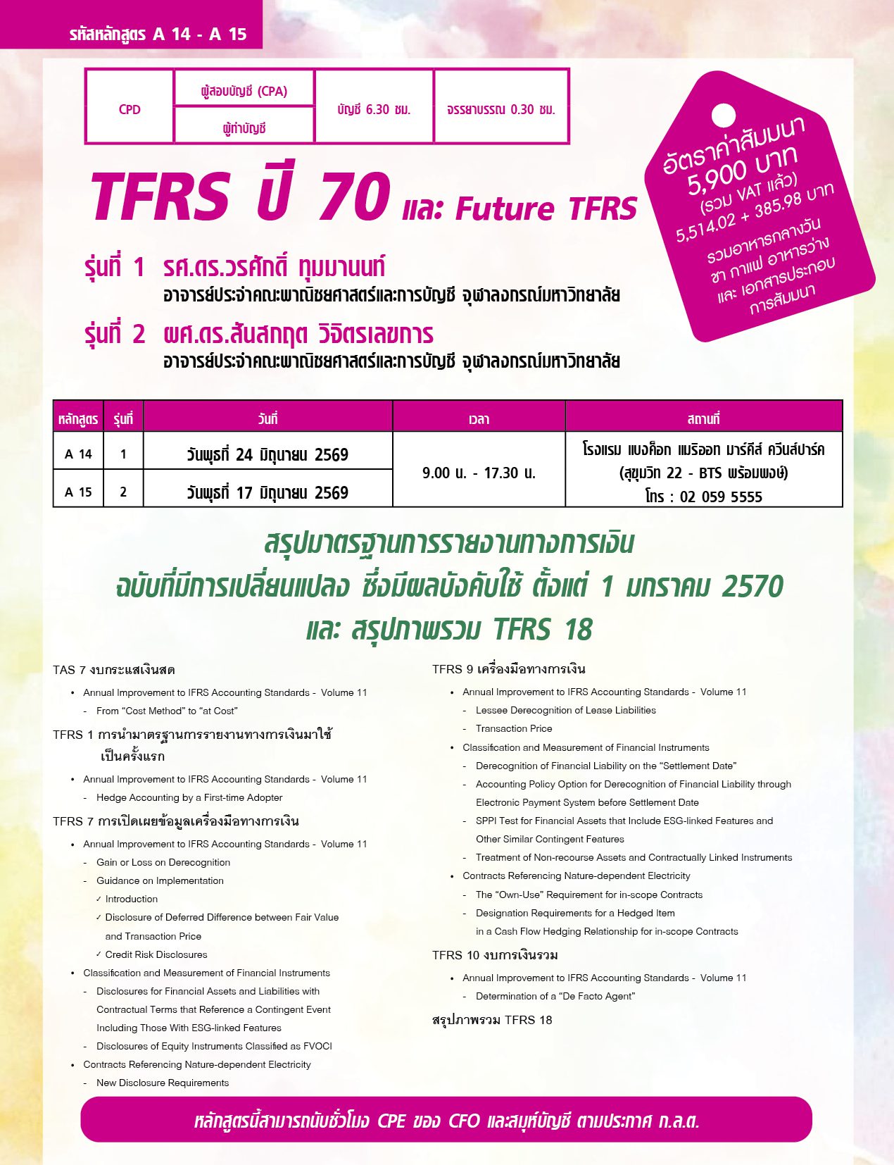 CPA: บัญชี 6.30 ชม. จรรยาบรรณ 0.30 ชม.