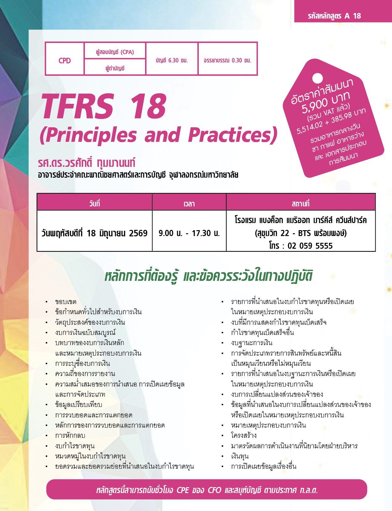 CPA: บัญชี 6.30 ชม. จรรยาบรรณ 0.30 ชม.